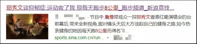 歌手郑秀文就曾深受抑郁症困扰,她表示是“运动救了我”。她每天都会都会坚持跑8公里健身。