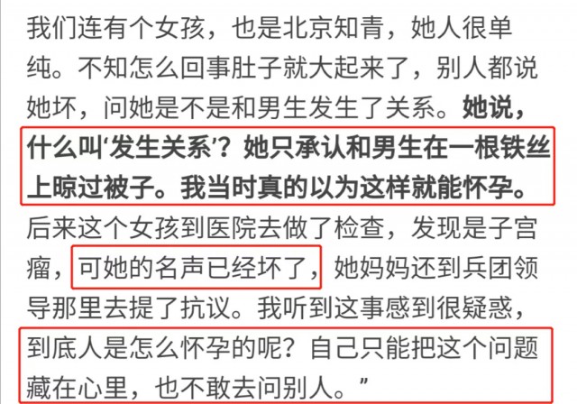 她说:“什么是‘发生关系’,我只是和男生在一根铁丝上晾过被子。”后来去做检查,才发现是因为她长了子宫瘤。