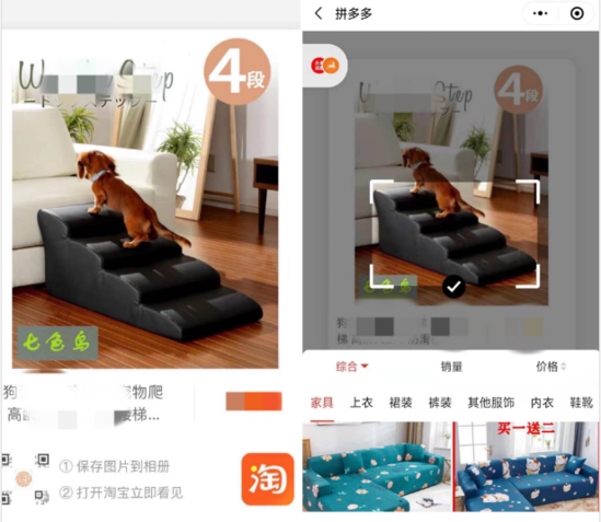微信長按打開淘寶商品圖,會跳轉到拼多多小程序頁面