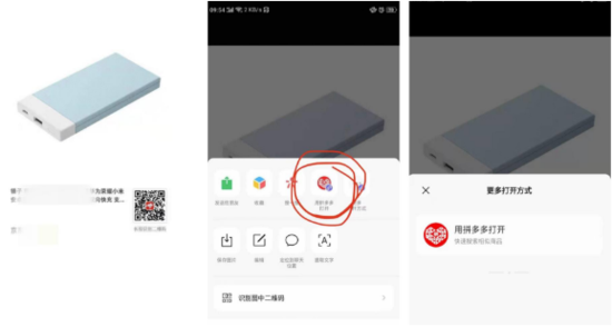 日前,有用戶發現,在微信環境下,長按識別帶有淘寶、京東、抖音等第叁方電商平台商品贰維碼圖片後,會出現"更多打開方式"提示,只要用戶選擇該選項,會自動識別默認用拼多多小程序。