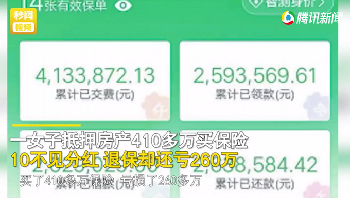 近日,河南鄭州,壹女子抵押房產410多萬買保險,10不見分紅,退保卻還虧260萬。鄭州的余女士求助稱在某保險業務員惡意誘導下,10年花費410多萬元購買了75份保險。銷售員否認惡意誘導,稱買保險就跟養個孩兒壹樣,比親孩兒都親。目前,雙方還在協商當中。