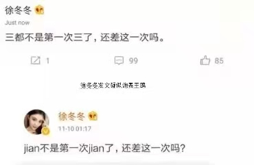 但徐冬冬之前有炒作嫌疑,路人信任度不高,因此爆料没掀起什么风波。而王鸥也只是被拍到过上蒲巴甲的休息车,开玩笑说“这是我老公”,那个时候两人在拍戏,这一切都是在镜头下发生的,不算介入实锤。