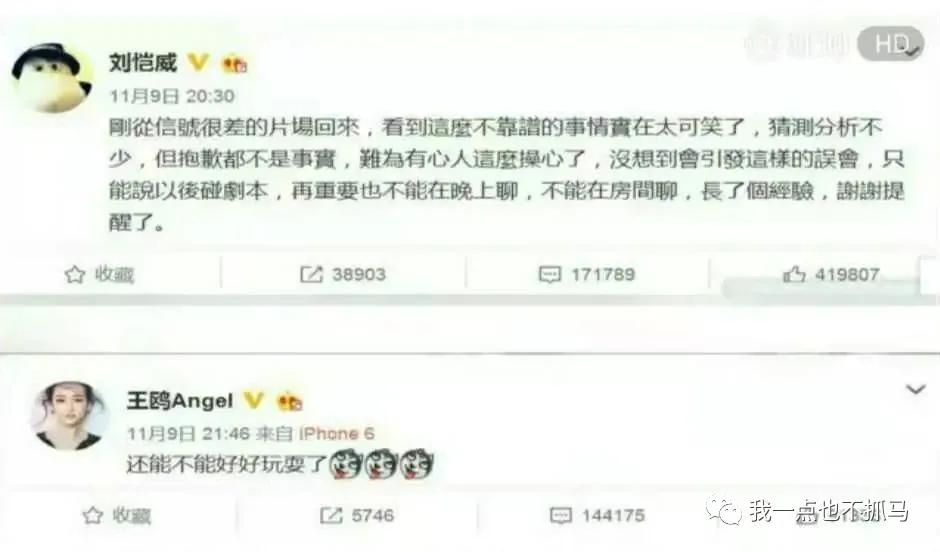 当然,夜光剧本事件只是爆出了刘恺威多次晚上去王鸥房间待了几个小时,没有拍到像姚笛文章那种亲密画面,确实不够锤。