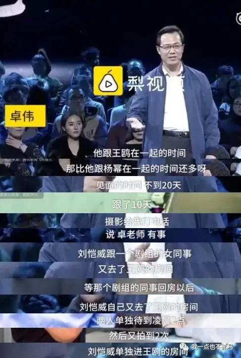 然后是卓伟上演讲节目称,团队当时是想用剧本事件逼迫刘恺威说出已经离婚的事实,(因为离婚后再跟王鸥有什么纠葛,只能说是在谈恋爱而非出轨)。