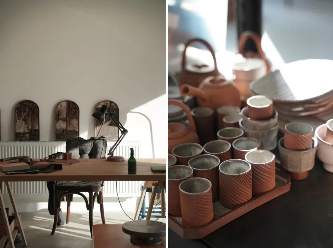 有时候天气不适合做东西,或者等待烧窑的时候,我也还是会去工作室转一转,摸摸泥土,心里感觉更踏实一些。