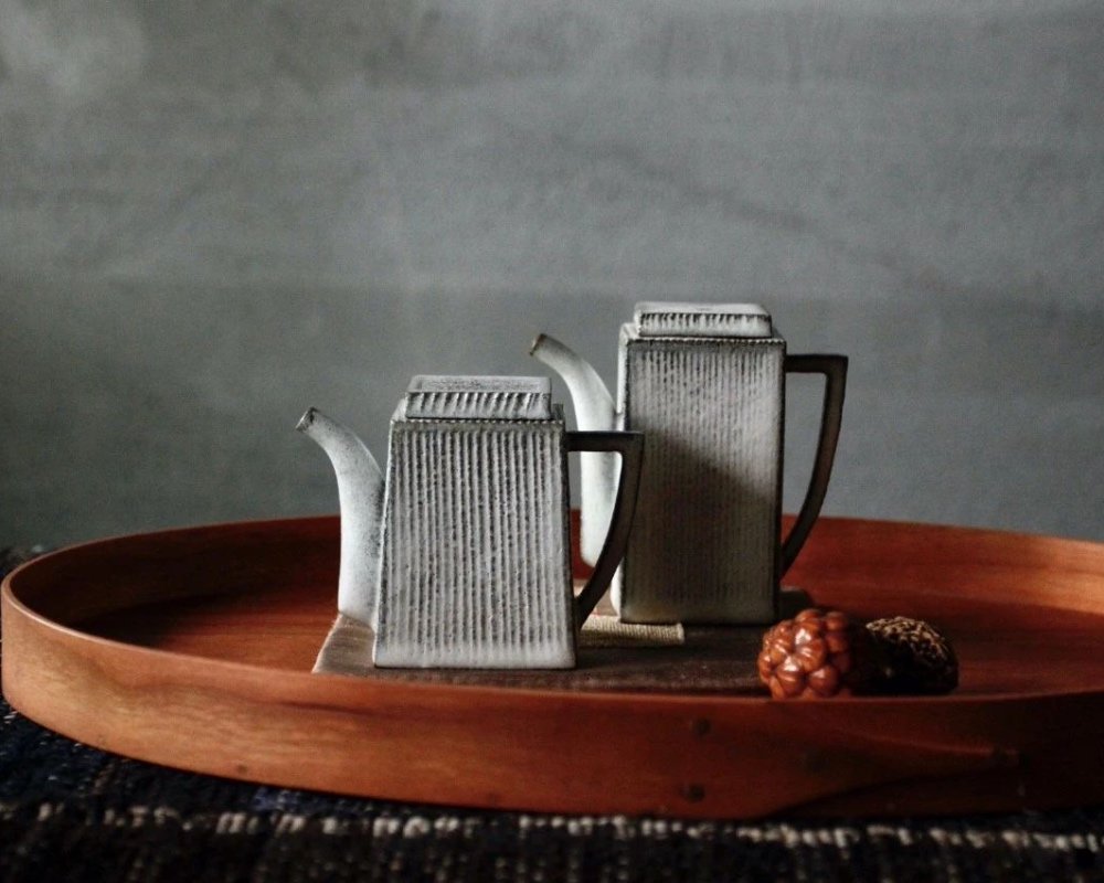 比如茶壶,我就尝试过很多不同的造型,去测试造型对于茶汤的影响。从最初的圆形,到方形、梯型、三角形,跨度很大。我发现圆形壶更包容,而方形壶泡出来的茶口感上会更立体一些,发香也会更好,有纵深感在里面,尤其在泡岩茶或乌龙茶的时候。