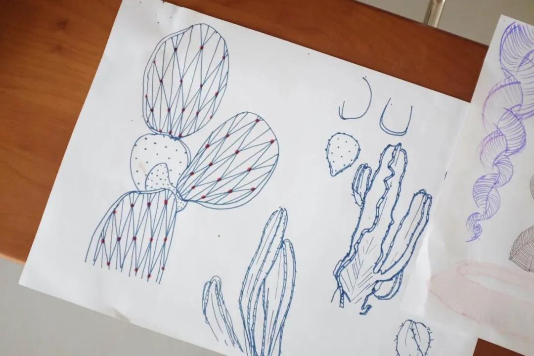 拎着满满一桶泥土在山间漫步,曲晶已经习以为常。同时,她还要观察山路两旁的植物,细细看它们的纹路,然后认真地记录、描绘在本子上——这些植物纹路也是她创作器物纹路的灵感来源。