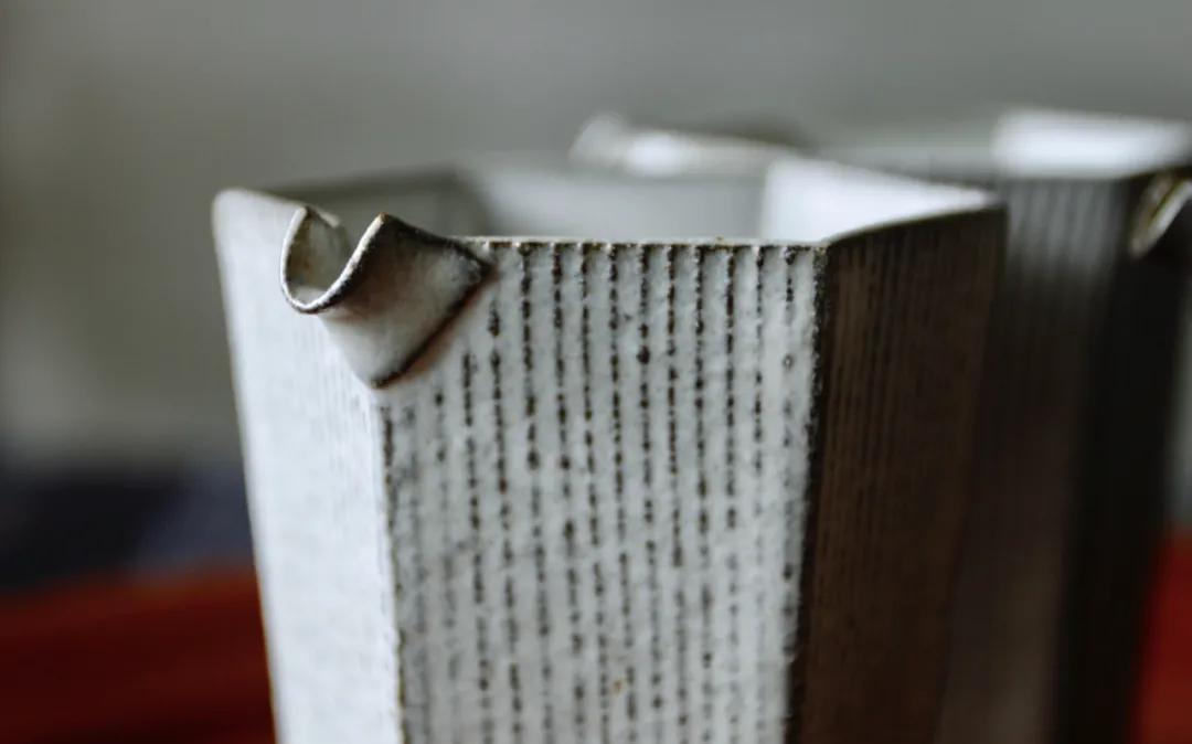 做这个小方壶也有三四年了。当时我很想摆脱使用拉胚机时圆形的束缚,后来偶然发现了“泥片成型”的方式。先把泥土摔打成泥片,然后像一个裁缝一样,随意地拼接组合。