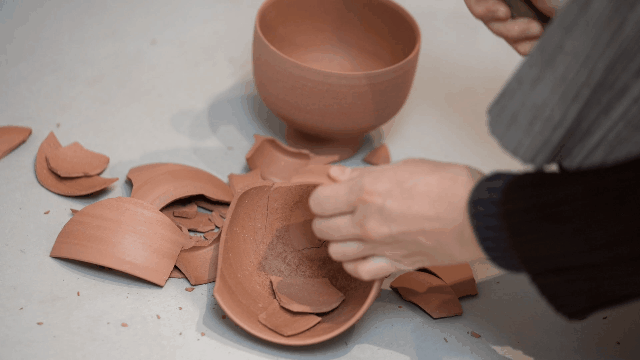 我出窑的成功率不高,可能一半一半。这些烧过失败的东西,在我的有生之年很难降解为泥土了,如果作为工业垃圾被扔掉太可惜了。于是我把它们敲碎,重新配到泥土中,让它循环起来。所以我的作品介于陶与瓷之间,它是炻器。