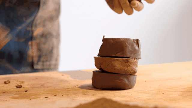 回到工作室,她便开始处理泥土。不同于大多数陶艺家用拉胚的方法,曲晶的作品都是摔打而成的,让纹路在泥片上自然地生长。工作室里很安静,只听得见泥土撞击桌面的声音。