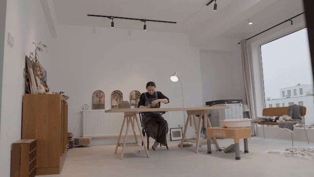 经常有人说你为什么不找一个助手来帮你,但是我其实很享受自己做的这个过程。它让我更珍惜手中的材料,也让我思考和它们的关系是什么。