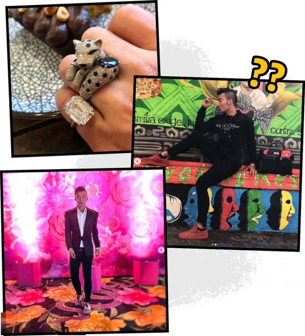 我试图从他的ins中找到一件我们寻常百姓也能买得起的单品,结果就是没有!虽然品位很不咋地,但是有钱这一重要信息一定要从头裹到脚。家里的Dior和卡地亚多到我怀疑他拿了东南亚区总代理, 珠宝腕表不闪到眩晕相当于没买。