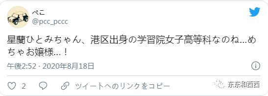 女方 26 岁,名叫星兰瞳。有网友挖到信息,她家住东京港区,而且是特别贵的麻布,称为白金地段 ↓↓