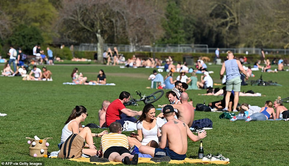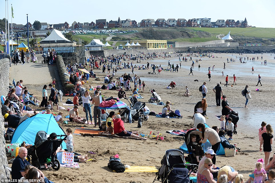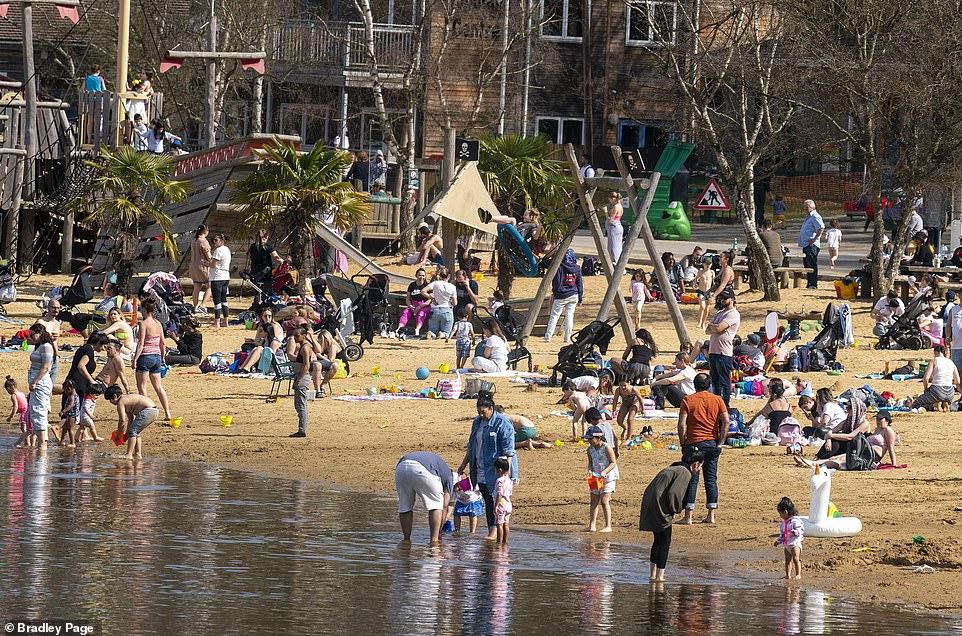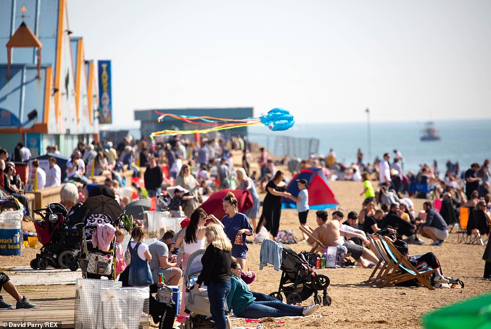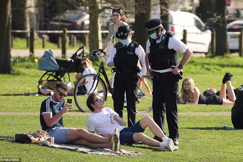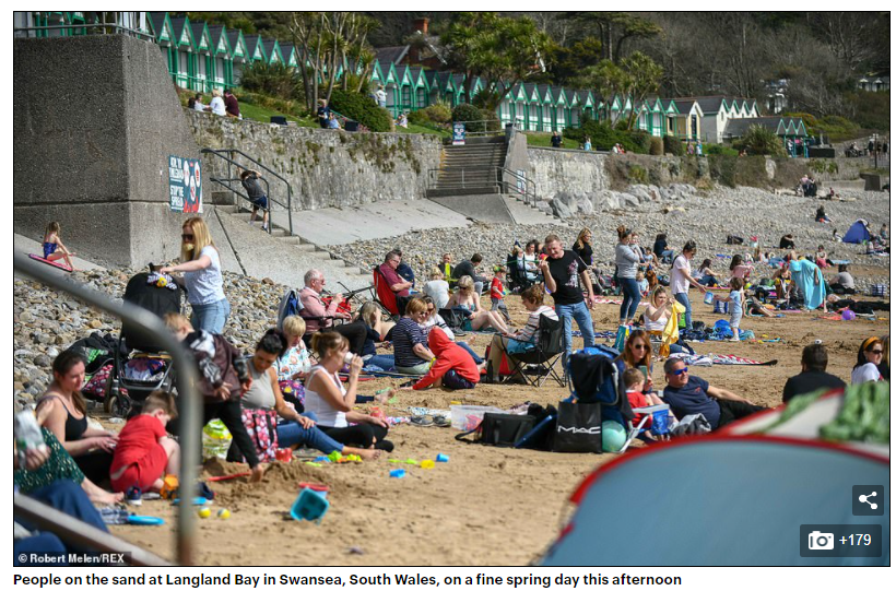 隨著氣溫升高,成千上萬的人湧向海灘和公園,英國全境內的警察都敦促民眾遵守社交防疫規則。