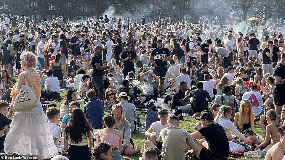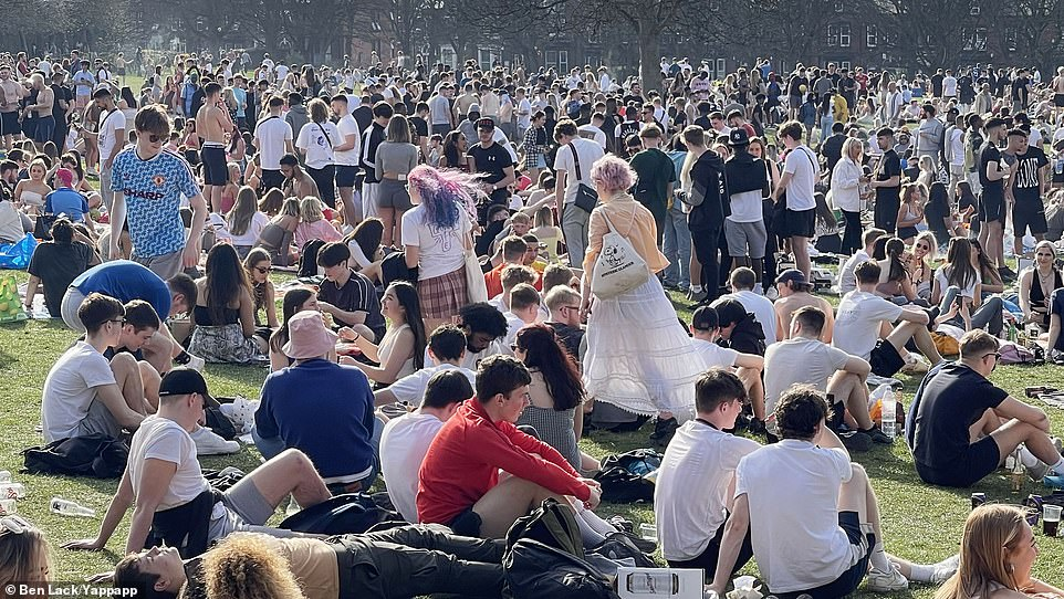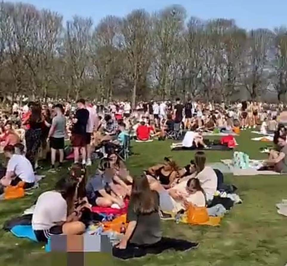 倫敦東哈克尼區的警察在推特上發布了壹張照片,之間人們在公園喝啤酒和葡萄酒、吃披薩,