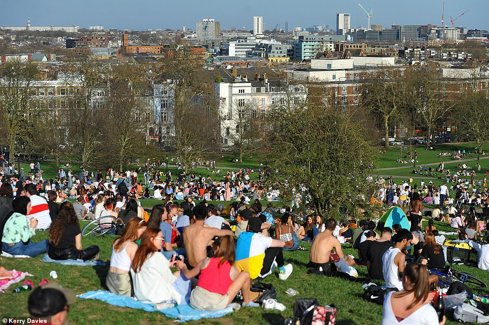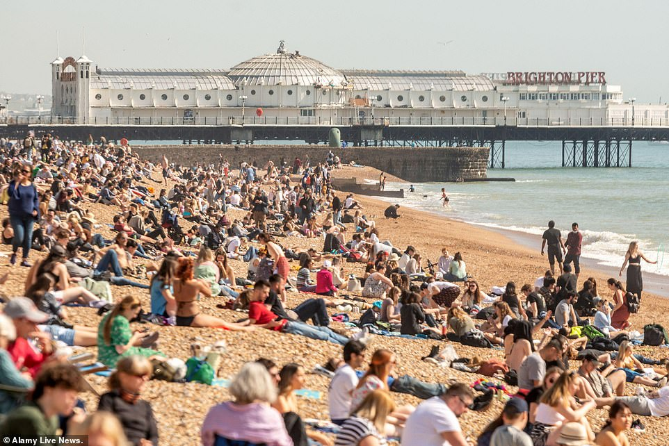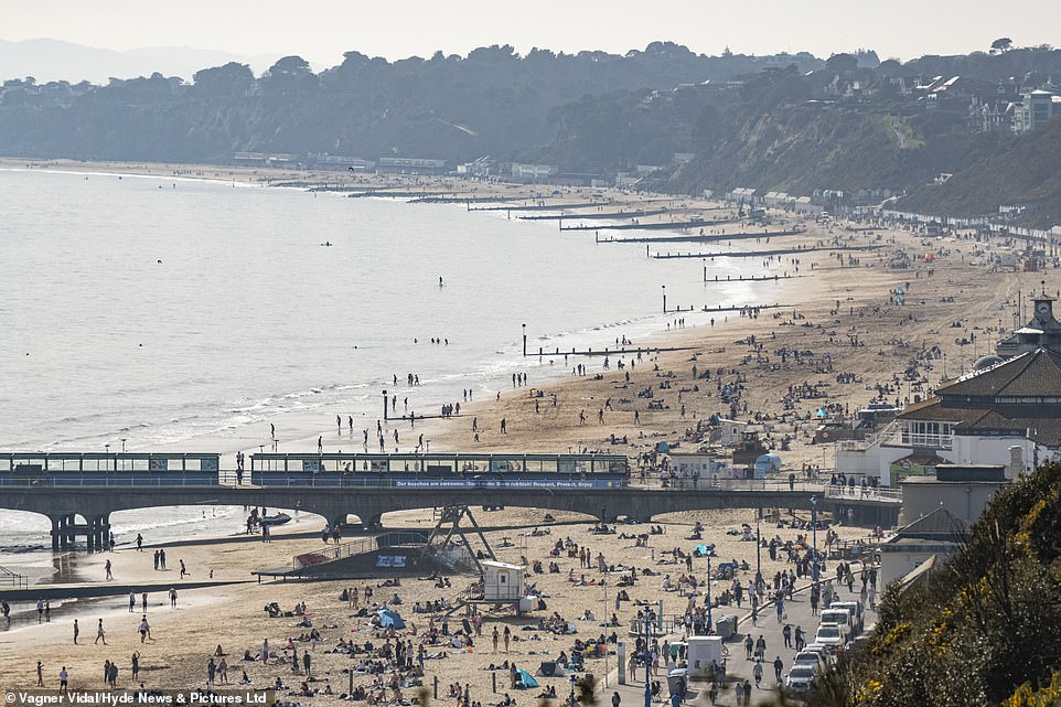 隨著氣溫升高,成千上萬的人湧向海灘和公園,英國全境內的警察都敦促民眾遵守社交防疫規則。