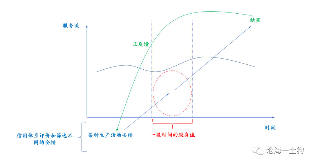 在現代經濟體系下,經濟系統允許多種調用服務流的方案,這些方案會形成不同的結果,信用體系負責篩選方案和評價結果。