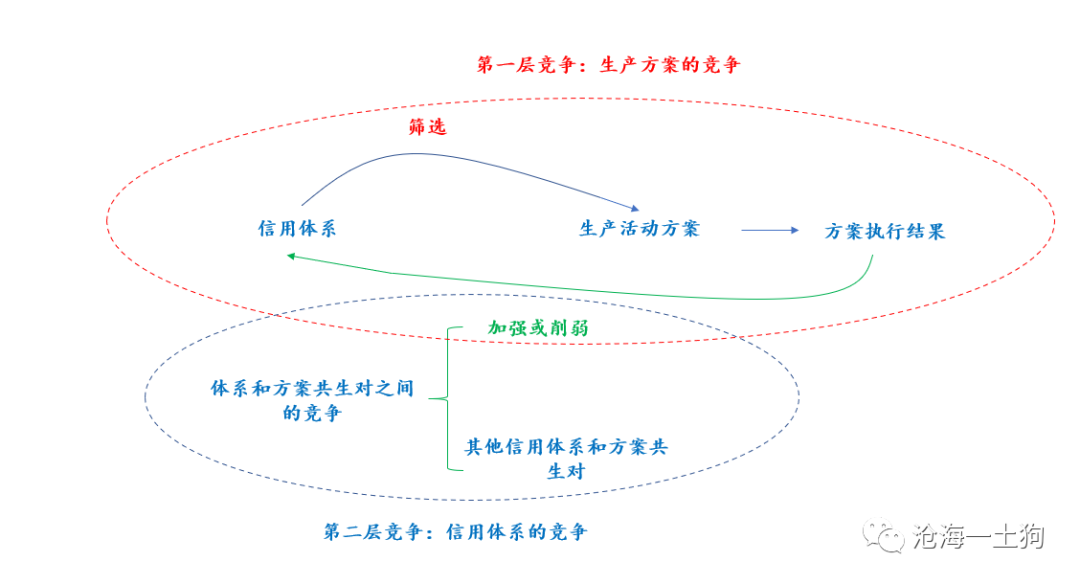 第壹層次的競爭是同壹信用體系下,生產方案的競爭;更高層次的競爭是不同信用體系之間的競爭。