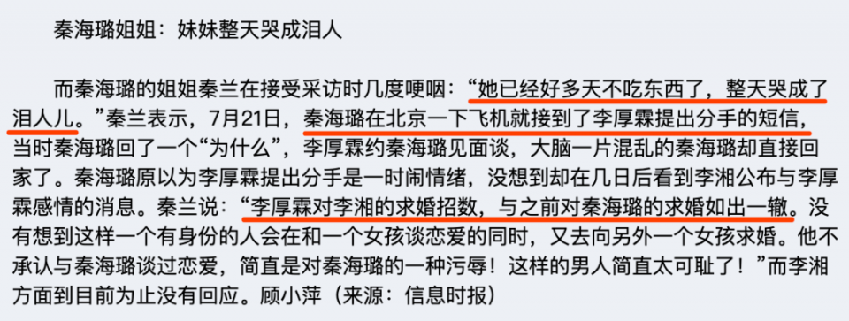 就在秦海璐幻想着即将步入婚姻时,多情的李厚霖却转头娶了李湘。