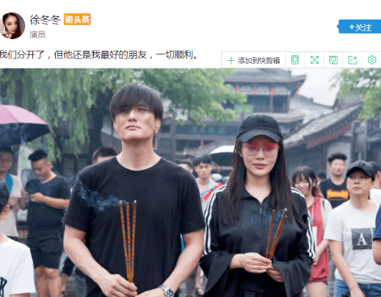 2019年8月11日凌晨,徐冬冬发文:“我们分开了,但他还是我最好的朋友,一切顺利。”之后,尹子维转发:“可能现在做朋友最好。Always support you。”如此一来,事情的真相,便也是很简单的了。那就是,二人官宣分手了。