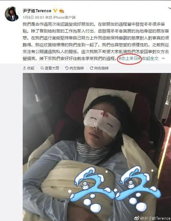 2019年1月8日,尹子维首次回应这段恋爱,还在微博上添加了“恋上冬日”的标签,很甜了~~