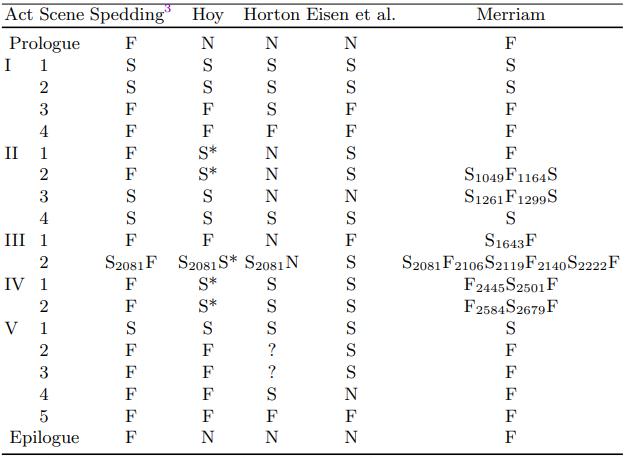 S 代表莎士比亚,F 代表弗莱彻,带下标的数字表示给定段落的最后一行丨参考文献 [ 8 ]