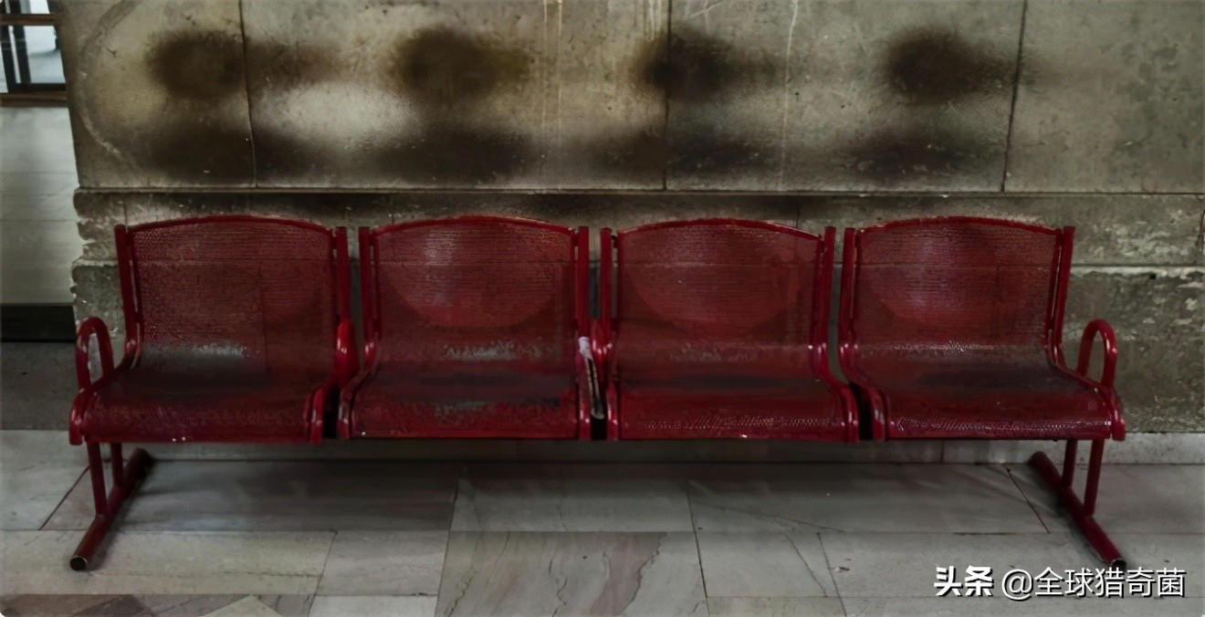 这个旧车站长椅后面的墙面上,