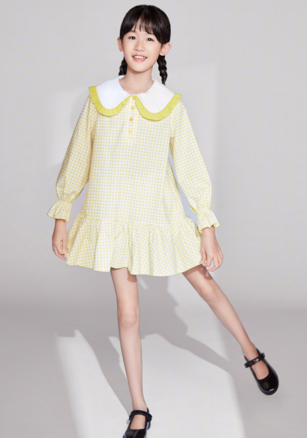 扎起双麻花辫发型的贝儿,配上她所穿的这身黄色连衣裙后也成功让我们感受到她身具的少女魅力。