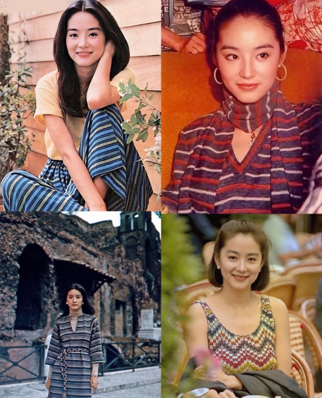 你以为条纹元素是这几年才流行的吗?错了,像这样的飘逸的材质的条纹裤子,条纹上衣,林青霞早就穿腻了。气质在她身上得到了最好的体现,蓝色,红色这种亮色没点气质,一般人根本Hold不住。霞姐穿在身上却意外地好看,气质满满,给我们留下了经典的潇洒的异域风情。