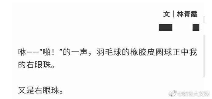 而近日在与朋友打羽毛球时,羽毛球的橡胶皮圆球又正中她的右眼珠,导致黑眼珠中间有一片灰色,令她产生了视物不清的症状,在医院治疗眼睛的时候,被查出患有白内障。