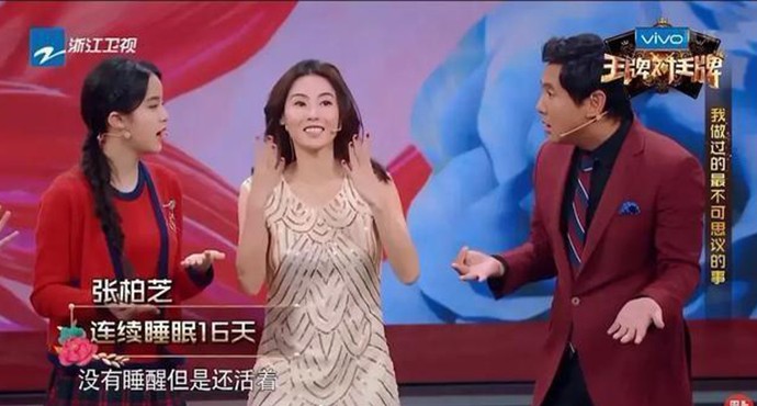 在节目《王牌对王牌》中,张柏芝自曝拍完戏后连续睡了16天之久,并且强调中间没有醒来,敷面膜也是家人帮她做的。