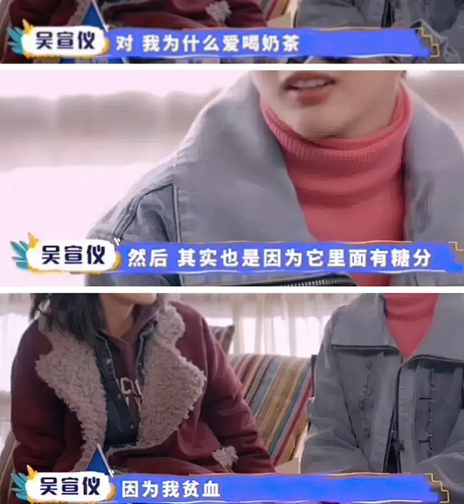 在其他综艺节目中吴宣仪又说自己一天要喝四杯奶茶。
