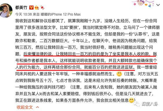都美竹說她是看到這份協議書,咨詢律師朋友,方才大夢初醒,意識到對方要送她拾年牢飯。