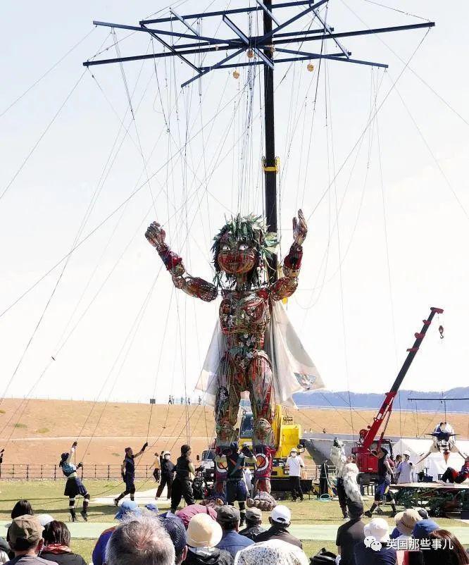 人偶 "Mocco" 由 2011 年东日本大地震灾区岩手、宫城、福岛的居民设计底稿,再由人偶大师泽则行牵头制作,用竹子等材料完成这 10 米巨型人偶。