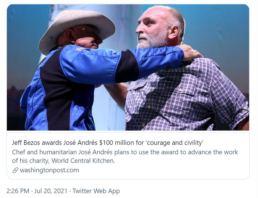 贝索斯的这一慈善举措,是在他和布兰森以及马斯克等人,因将财富用于太空旅游而面临批评时提出的。