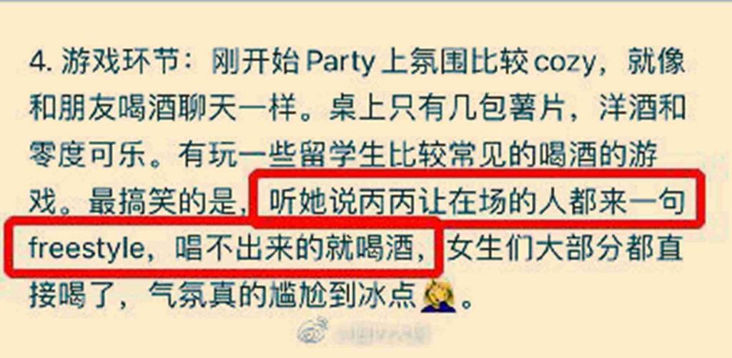 知情人爆料的酒局游戏环节细节。(微博@圈内大腕)