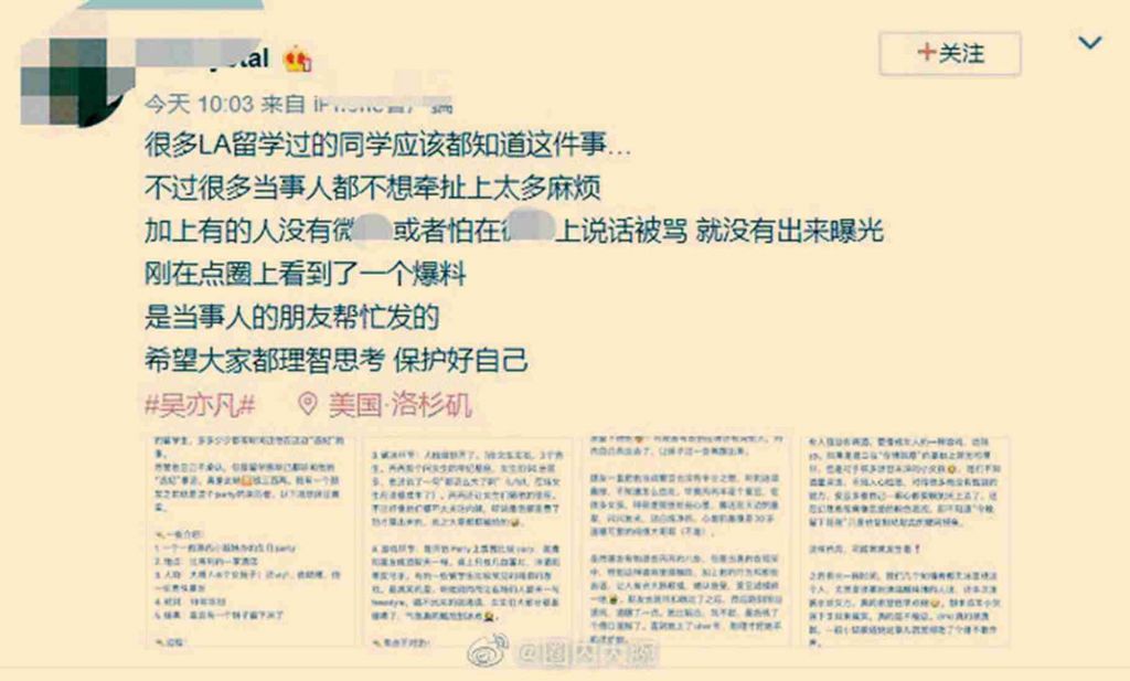 华裔知名艺人吴亦凡遭19岁女孩都美竹指控“选妃”式诱奸未成年一事持续发酵。最新消息指,又有一名女生在社交平台发文表示,已向北京警方录完口供,事情很快会水落石出。