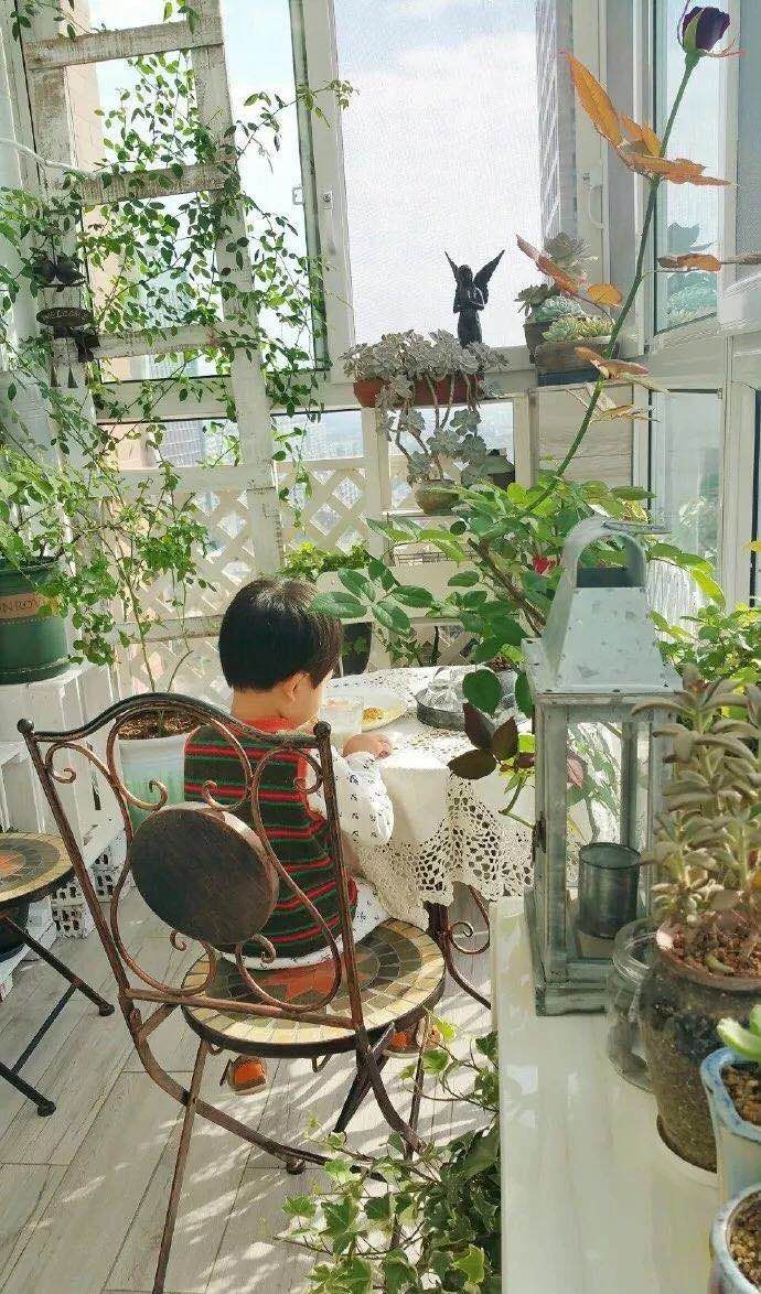 自己最爱植物,希望让孩子亲近自然,阳台里还装下了小森林。