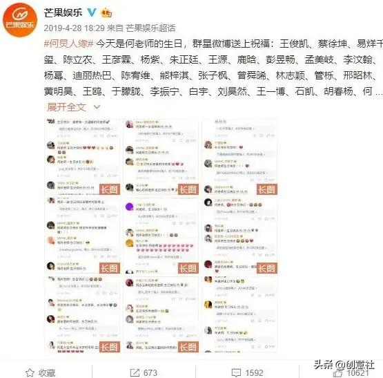 2019年4月28日,何炅生日当天,仅娱乐圈里就有133位明星送上了自己的生日祝福,一条微博官方推送的生日动态,评论量就高达100万!