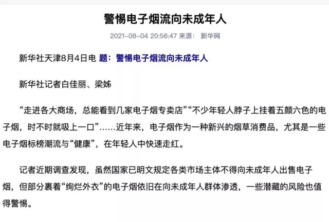 新华社本尊出手,深夜发文指出当前电子烟的管理松散。