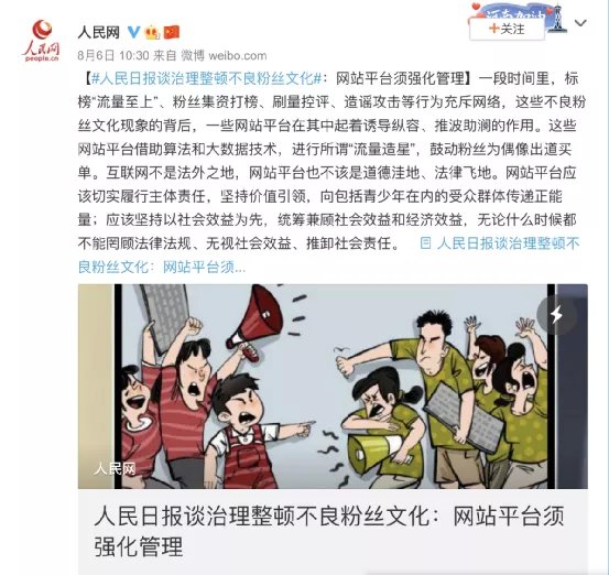 8月6日,人民日报再补一拳,刊文评论:网站平台借助算法和大数据技术,进行所谓“流量造星”。