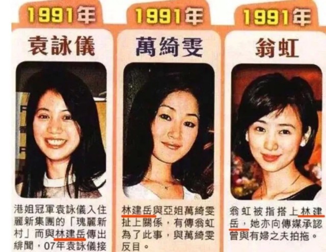 但林建岳也不是什么省油的灯,1991年,他的妻子谢玲玲刚生下双胞胎儿女,林建岳就与三位女星传出了绯闻。