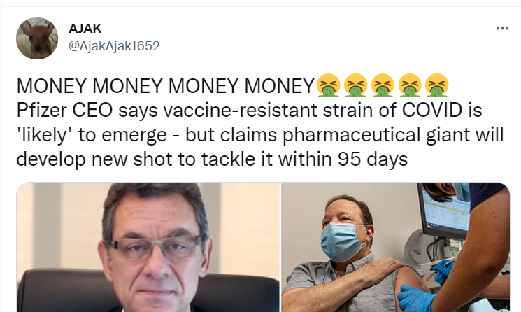 网友们前脚挖地三尺,扒出了要给全地球人注射的辉瑞疫苗CEO亲口说: