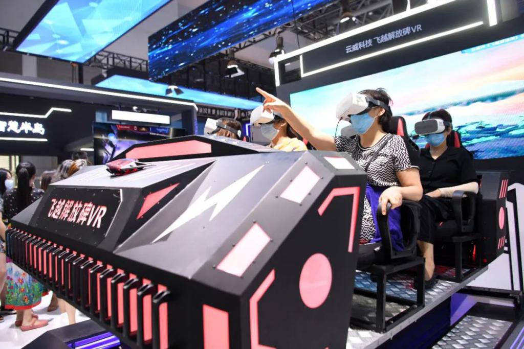 ▲ 8 月 23 日,觀眾在 2021 智博會上通過 VR 技術體驗重慶美景。 新華社記者 唐奕 攝