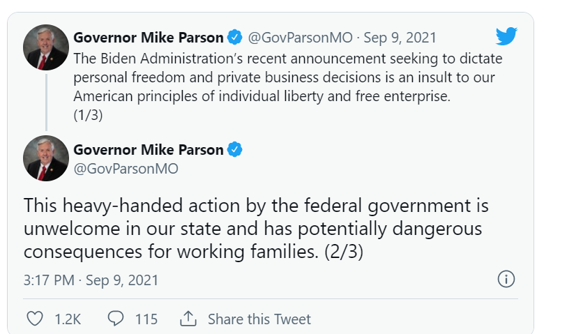“接种疫苗可以保护我们免受严重疾病的影响,但接种疫苗决定是个人的医疗保健决定,这种权利是应该被保留的。我的政府将始终对威胁限制我们自由的——联邦权力和政府过度——行为进行反击。”
