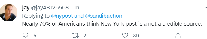 都是拜登政权所赐!失败的阿富汗撤军,大量引进难民并越过背景调查给予身份,像法西斯一样强制疫苗,支持一切与美国传统价值观背道而驰的言行,不为美国和美国人的利益,而是为他们自己的利益要毁掉美国!不过美国人也越来越敏感,谁站队就遭炮轰:网友说近70% 的美国人认为纽约邮报的来源不可靠。