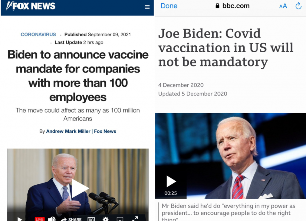 拜登宣布:企业超过100位雇员的须强制施打新冠疫苗。