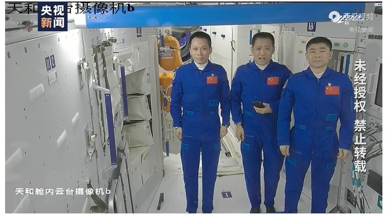 分离前,航天员乘组在地面科技人员的配合下,完成了空间站组合体状态设置、实验数据整理下传、留轨物资清理转运等撤离前各项工作。
