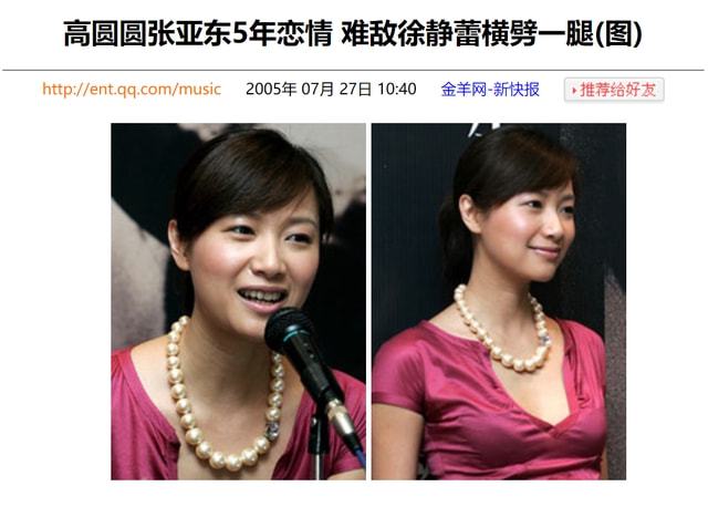 張亞東是有婦之夫,他的老婆是竇穎,竇穎的哥哥是竇唯,和王菲有過壹段婚姻,高圓圓再壹次上演了“狗血”戀情。