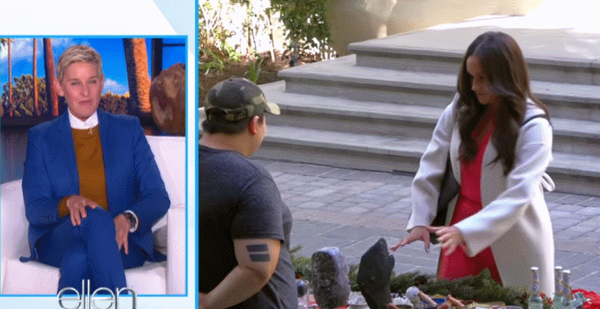 节目开始,梅根和她的助理到了艾伦指定的地点——一个小摊子附近,艾伦全程会通过耳机向她们下达指令。